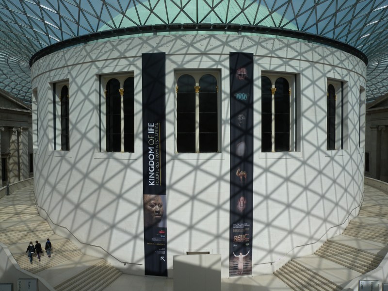 The British Museum faces south so is in sun most of the day, however early morning will mean less crowds.